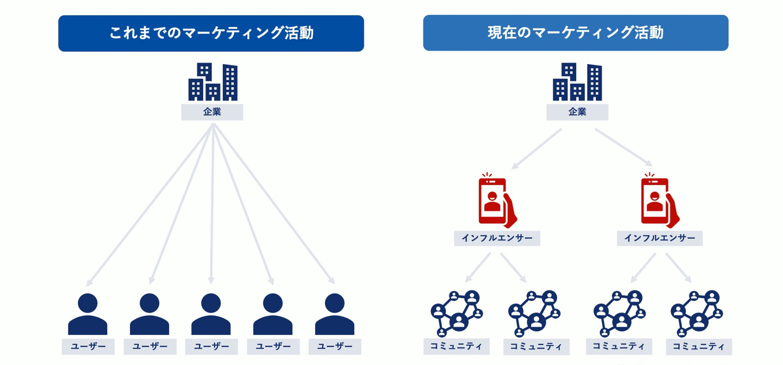 近年ますます注目されており、Instagramにおけるマーケティング活動も従来の企業主体の情報発信から、インフルエンサーを介した共感・体験ベースの発信へとシフトしています。