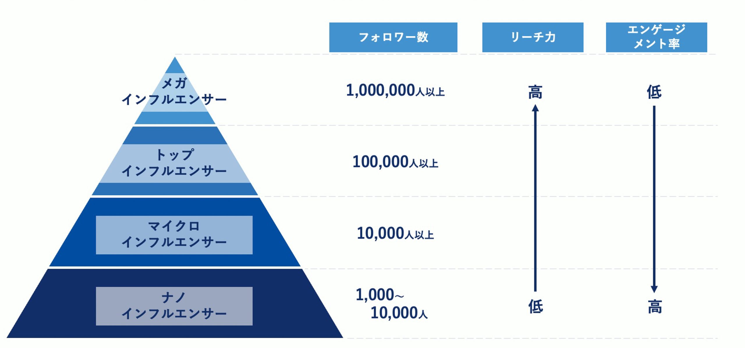 そのため、施策の目的に応じて「どのインフルエンサーに依頼するか」を使い分けることが成功の鍵となります。