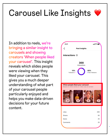 2. 「カルーセルのどのスライドでいいねされたか」が分かるチャートが追加されました。