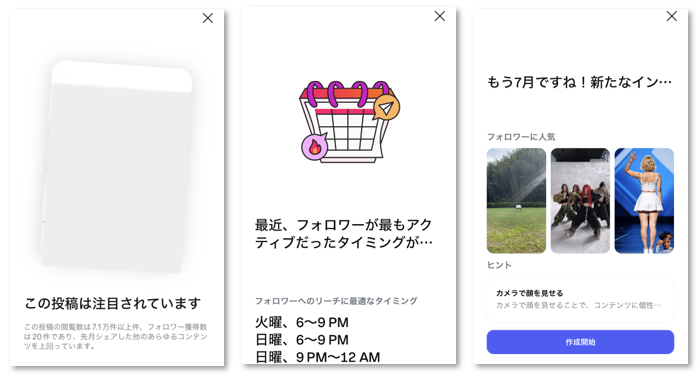 • フォロワーとのコミュニケーションを増やす:ストーリーズでのクイズ、投票、質問コーナーなど、フォロワーとの交流を深めることでエンゲージメントを高められ、ストーリーズのアルゴリズムを理解することでシグナルが蓄積されます。