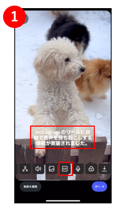 音声付きのリール動画に対し、字幕(キャプション)を自動生成できる機能が追加されました。動画を投稿する際に、該当動画を選択後「字幕(cc)」ボタンをタップすることで自動生成が可能です。
