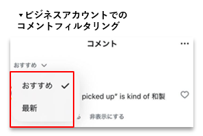 ※ビジネスアカウントでは、「おすすめ」「最新」の基準でのみ並び替えられます。