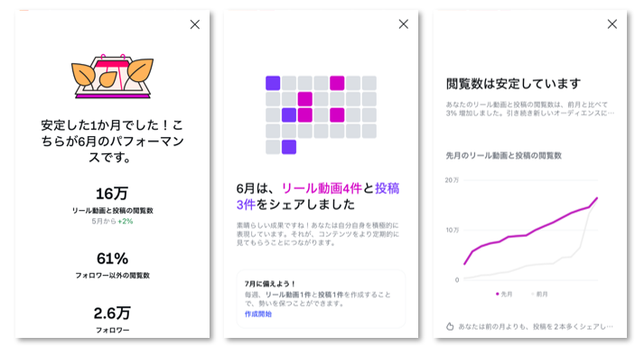 月ごとの成果を確認できるインサイト情報が追加されました。月ごとのインサイトをまとめて見ることで、変化や傾向が一目で分かり、データを比較しやすくなります。